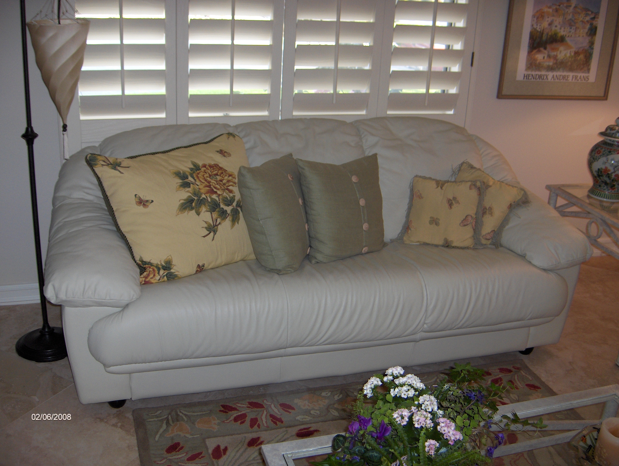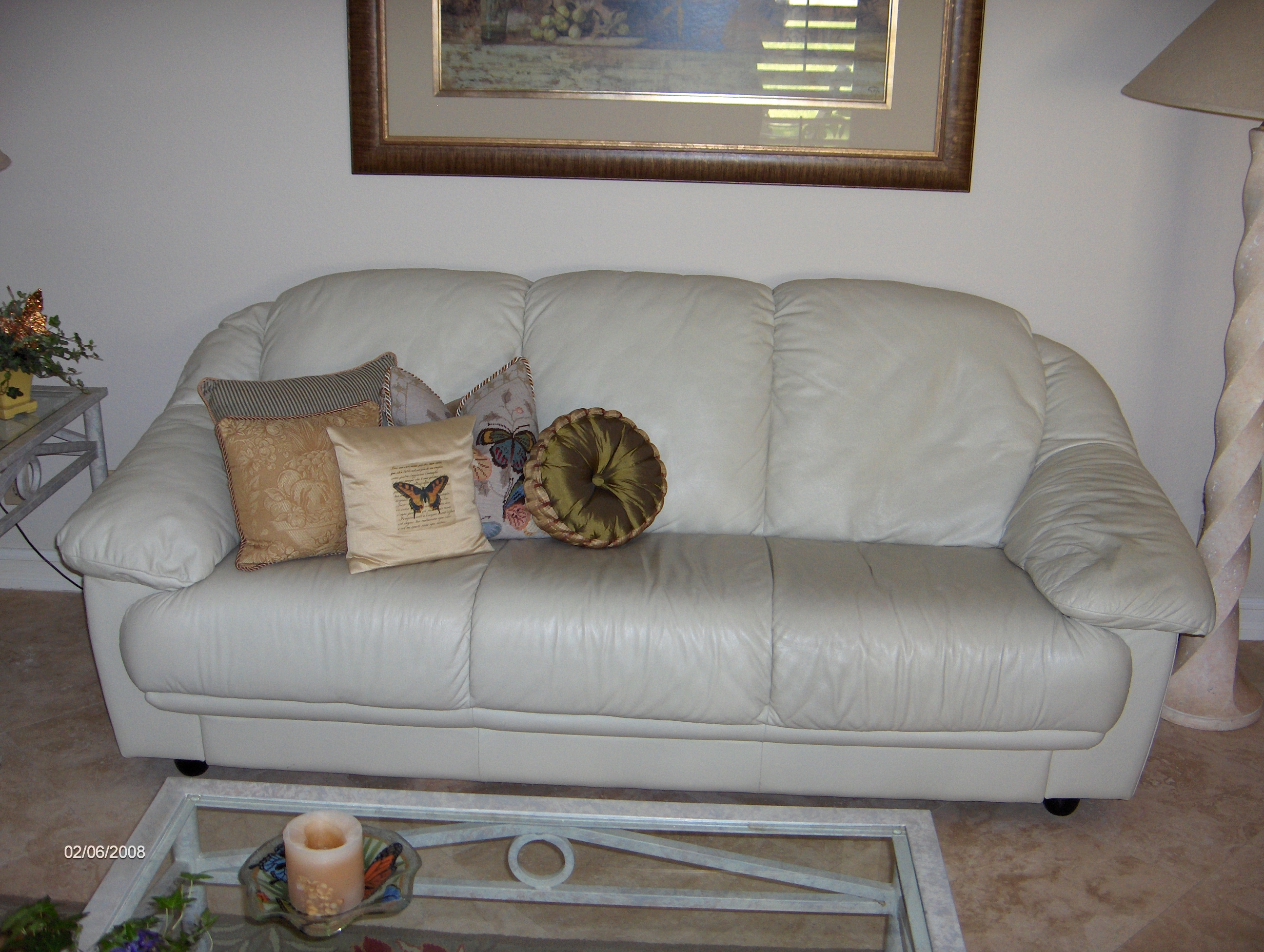 Couch, leather, 80 in. wide X 36 in. deep X 32 in. tall, $300