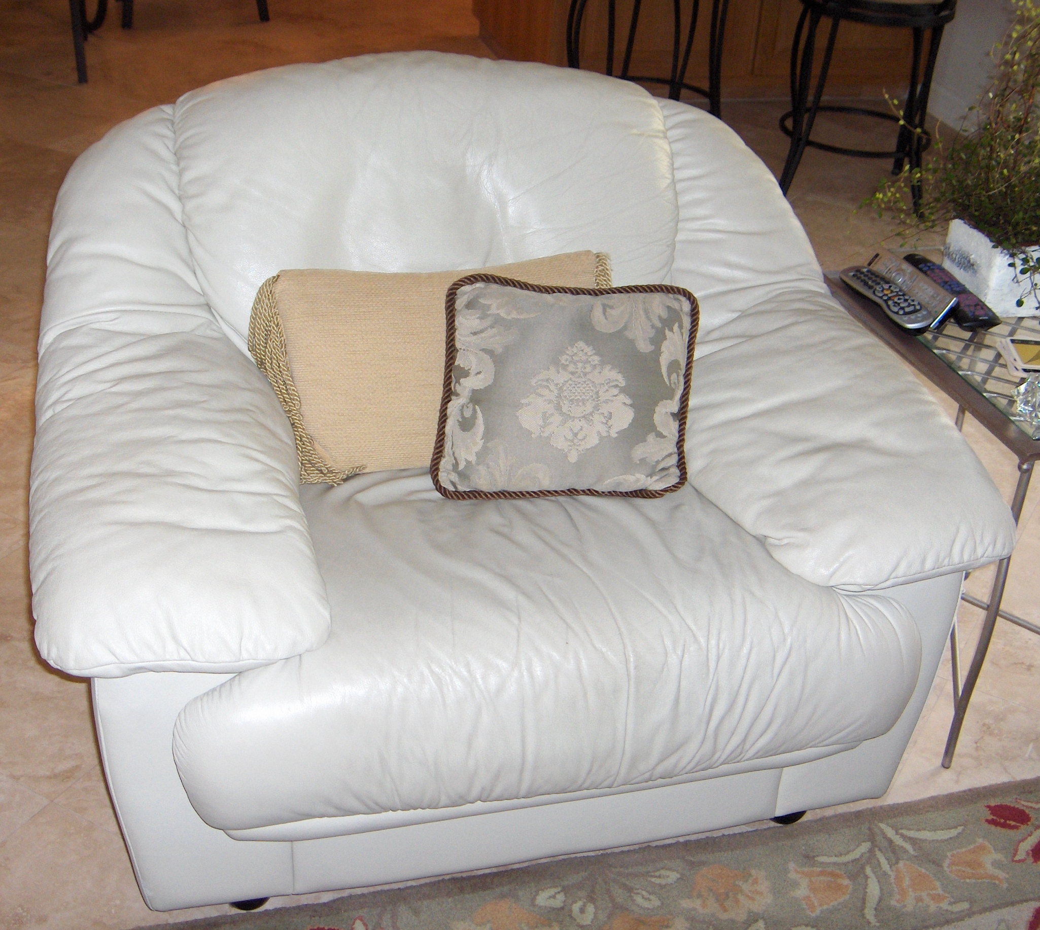Chair, leather, 43 in. wide X 36 in. deep X 32 in. tall, $150