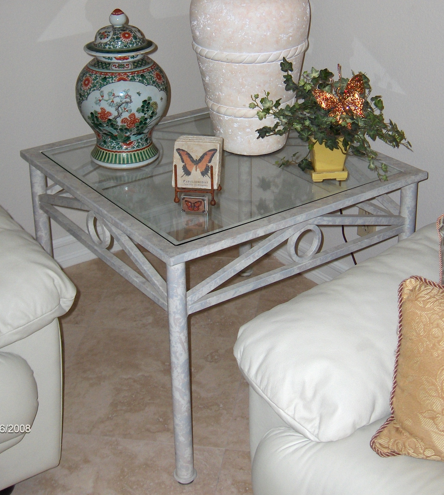 End table, metal and glass, 28 in. X 28 in. X 22.4 in. tall, $75