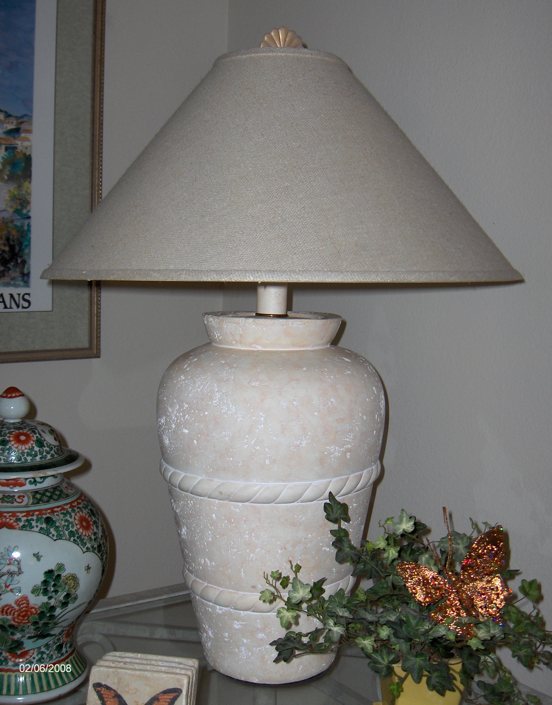 Table lamp, 31 in. tall X 12 in. maximum diameter, $50